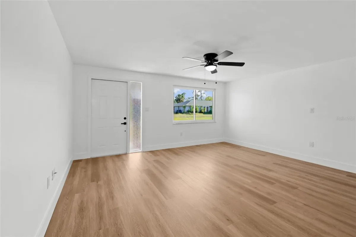 This residence has undergone over $65,000 in high-end improvements and presents as virtually new. Recent upgrades include a brand-new roof, A/C system, kitchen with quartz countertops and cabinetry, fully renovated bathrooms, premium waterproof LVP flooring, and fresh interior and exterior paint. The open-concept design creates an ideal flow for entertaining, while the flex room may serve as either a third bedroom or a home office. A fully fenced yard offers privacy and functionality for outdoor gatherings. Now priced more than $40,000 below renovation value, this home represents an exceptional opportunity.